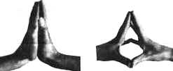 Для проведения бесконтактного массажа руки должны быть чистыми и сухими, подушечки пальцев мягкими, ногти подстрижены. Кольца, цепочки, браслеты снять. Алкоголь и курение исключают полностью. Массаж нужно проводить в спокойной обстановке, без лишних разговоров — все это отвлекает. Мышцы пациента должны быть расслаблены. Чтобы согреть руки, соедините их (см. рисунок).