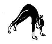 - Опираясь на пол ладонями и пальцами ног, поднимите таз и согните спину дугой. Голова опущена, ноги на ширине плеч. Колени и локти выпрямлены. Очень медленно поднимите голову к спине, как можно дальше. Расслабляя спину, опустите ее вниз (голова поднята). Медленно вернитесь в исходное положение.