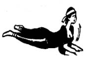 - Исходное положение — лежа на животе. Ноги вместе, руки вдоль туловища. Прогибаясь в спине, одновременно приподнимите голову, плечи и ноги. Повторить 8 раз.